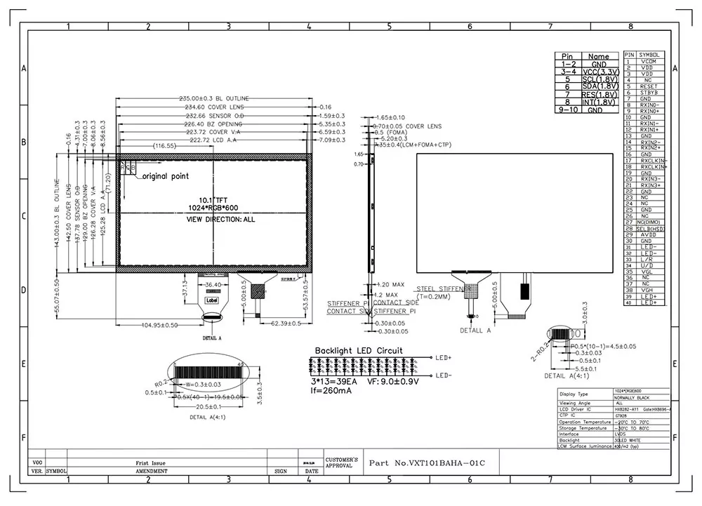 TFT LCD는 이미지 품질을 향상시키기 위해 박막 트랜지스터 기술을 사용하는 액정 디스플레이의 한 유형이며 일상 생활에서 수많은 응용 프로그램이 있습니다. 중국의 전문 TFT 모듈 제조업체 및 공급 업체로서 CTP가있는 Victronix 10.1 인치 1024 × 600 IPS TFT 모듈은 다른 제조업체와 다른 이유는 무엇입니까? 첫째, 모든 방향에서 420 CD/m², 폭 80 ° 시야각의 전형적인 밝기 및 800 : 1의 대비 비율을 제공하여 다양한 각도에서 탁월한 가독성을 보장합니다. 둘째, 전형적인 수명이 30,000 ~ 50,000 시간 (최초의 밝기 50%)으로 39 개의 흰색 LED를 사용하여 백라이트 장치를 통합하여 모든 조명 조건에서 명확한 가시성을 보장합니다. 또한 HX8282A11+HX8696A 컨트롤러와 6/8 비트 LVDS 인터페이스와 GT928 CTP 컨트롤러가 장착 된 강력한 5 점 정전기 터치 패널을 지원합니다. 또한 열 충격 (-30 ° C +80 ° C 사이클), 습도 저장 (60 ° C/90% RH) 및 기계적 진동을 포함한 엄격한 환경 테스트를 통과하여 확장 온도 범위 (-20 ° C ~ +70 ° C)에서 완벽하게 작동 할 수 있습니다.