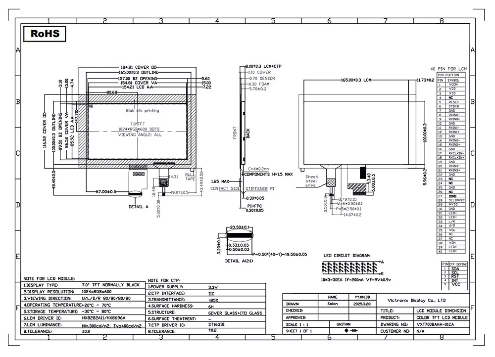 Victronix는 중국에 본사를 둔 전문 TFT 모듈 제조업체 및 공급 업체입니다. 이 분야에서 18 년의 경력을 가진 우리는 다양한 모델을 개발했습니다. 표준 제품 외에도 고객의 특정 요구를 충족시키기 위해 맞춤형 서비스를 제공합니다. 이 Victronix 7 인치 1024 × 600 LVDS IPS TFT LCD는 Victornix가 요구하는 산업, 임베디드 및 상업용 응용 프로그램을 위해 설계 한 강력한 7 인치 TFT LCD 모듈입니다. 생생한 비주얼, 반응 형 터치 기능 및 산업 등급 신뢰성을 결합한이 모듈은 다양한 운영 환경에서 뛰어난 성능을 제공합니다.
